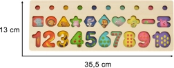 Hračka je starostlivo spracovaná, hladko brúsená a príjemná na dotyk. Podporuje rozvoj motoriky, koordinačné schopnosti, vizuálne rozlišovanie aj kreativitu. Skvele sa hodí na prvé zoznámenie s číslami, farbami a tvarmi v domácom prostredí aj v materských školách.