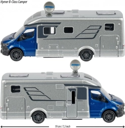 Model je oficiálne licencovaný značkami HYMER a MERCEDES-BENZ a ponúka atraktívnu kombináciu vnútorného aj vonkajšieho osvetlenia a 2 realistických zvukov – zvuky prírody a motora – aktivovaných stlačením kapoty. Otváracie dvere, otočná satelitná anténa a pneumatiky s dezénom sa postarajú o plynulú jazdu a množstvo herných scenárov doma aj na cestách.
