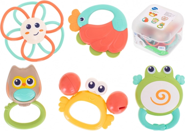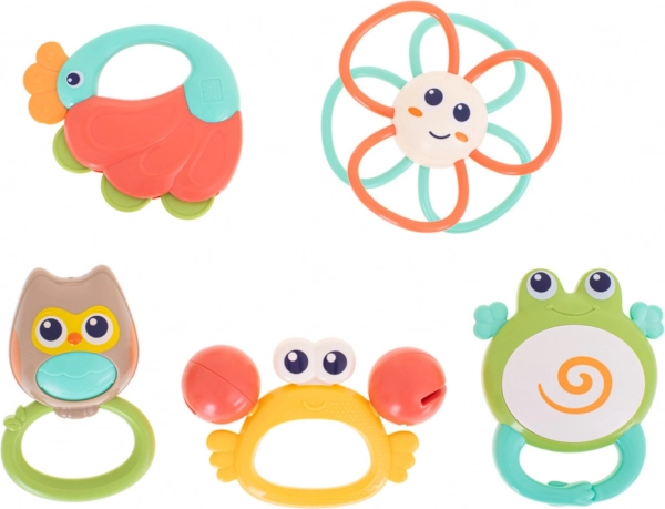 Zábavná a vzdelávacia sada hrkálok a hryzátok pre najmenších! Predstavujeme vám fascinujúcu sadu pestrofarebných hrkálok a hryzátok v tvare milých zvieratiek, ktorá si získa srdce každého dieťatka.