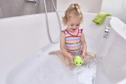 Táto roztomilá korytnačka do kúpeľa je skvelým spoločníkom pre malých milovníkov vody. Pláva na hladine a jemným prúdom strieka vodu, čím podporuje zmyslové vnímanie a motivuje deti k interaktívnej hre počas kúpeľa.
