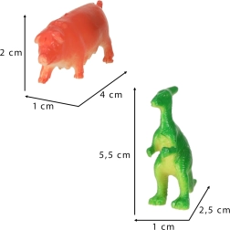 Prasa: 4 × 1 × 2 cm; Dinosaurus: 5,5 × 1 × 2,5 cm