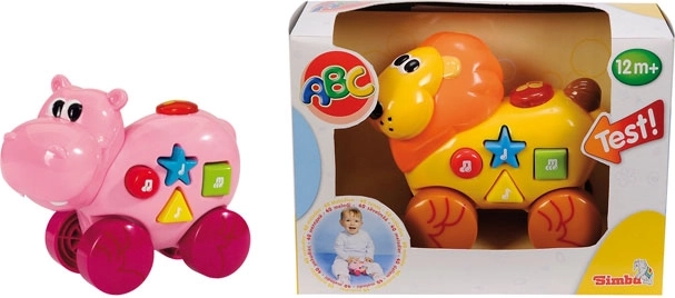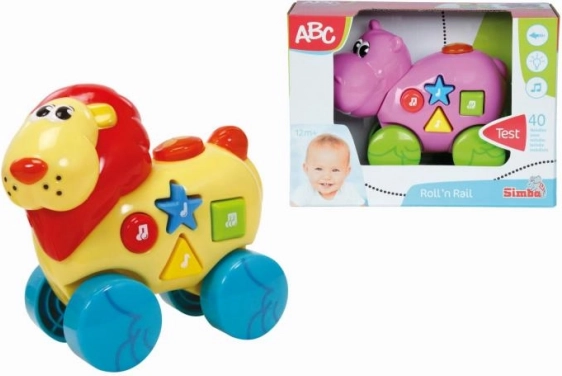 Hrajúce zvieratko na kolieskach. Pod 4 tlačidlami rôznych farieb a tvarov sa nachádza 40 detských melódií. Veľkosť 14 cm.