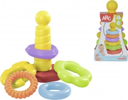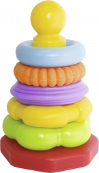 Pyramída s farebnými krúžkami je ideálna pomôcka pre rozvoj motoriky a schopnosť kombinovať u detí. Obsahuje päť rôznofarebných krúžkov rozličných tvarov.