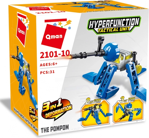 Objavte miniset zo série hyperfunction tactical unit, ktorý deťom umožní postaviť parádneho robota, obrannú vežu aj mechanického tvora. Vďaka šikovnej konštrukcii a 31 dielikom si malí stavitelia precvičia jemnú motoriku, trpezlivosť aj predstavivosť – a to všetko s odolnými kockami z kvalitného ABS plastu.