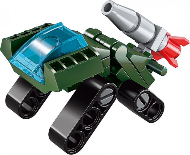 Postavte tank, vozidlo s kanónom alebo vlastnú variáciu. Prestavovanie je rýchle a zábavné, ideálne na rozvoj kreativity.