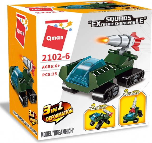 Ministavebnica Qman ponúka skvelý pomer zábavy a variability v malom balení. Vďaka 3v1 konceptu deti ľahko postavia rôzne modely – od malého tanku až po akčné vozidlo – a môžu ich kedykoľvek prestavať. Sada rozvíja jemnú motoriku, priestorovú predstavivosť a kreativitu.