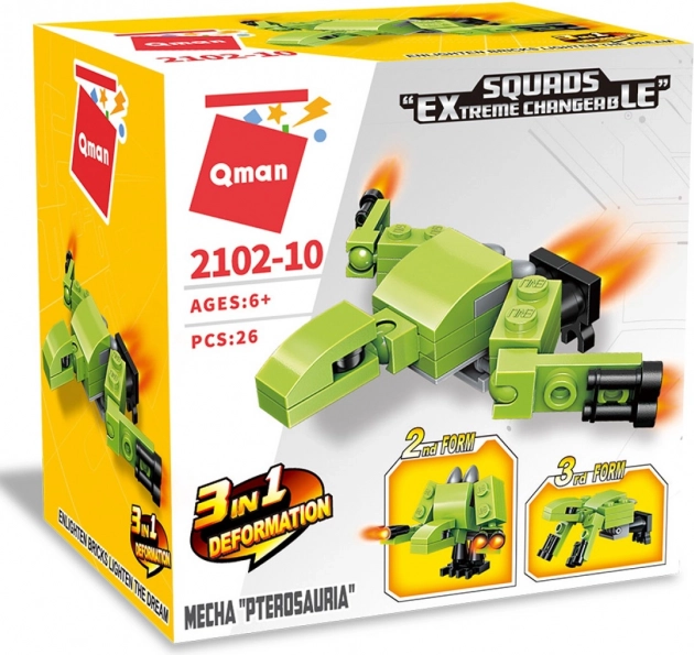 Stavebnica Qman Mecha Pterosauria 3v1 je ideálna pre malých nadšencov do kociek a modelovania. Deti si môžu vybrať z trojice zostaviteľných modelov, alebo vytvoriť vlastné unikátne konštrukcie. Táto hračka je vyrobená z kvalitného a odolného ABS plastu, čo zaručuje jej dlhú životnosť.