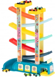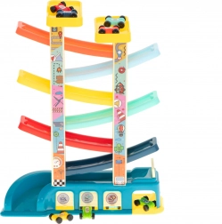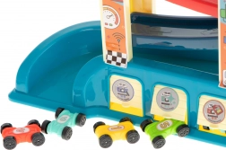 Vďaka 8 autíčkam je súprava ideálna pre súrodencov aj kamarátov a skvele sa hodí do detských kútikov. Pri hre si deti precvičujú jemnú motoriku, pozorujú základné princípy fyziky a rozvíjajú logické myslenie. Spodná garáž udrží poriadok a farebné prevedenie poteší ako ozdoba detskej izby.