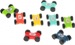 Sada obsahuje osem farebných autíčok s číslami – ideálna na spoločné preteky, prvé počítanie aj rozlišovanie farieb a tvarov.