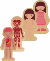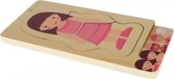 Táto kvalitná drevená skladačka vedie deti k objavovaniu, ako je človek stavaný. Malí bádatelia skladajú vrstvy v poradí: kostra → orgány → svaly → telo → oblečenie. Vzniká tak názorný obraz ľudského tela, ktorý podporuje zvedavosť a prirodzené učenie bez nátlaku.