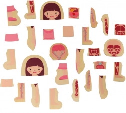 Dieťa skladá postavu od kostry cez orgány a svaly až po telo a oblečenie. Názorné vrstvy podporujú pochopenie ľudského tela hravou formou.