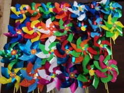 Veterník v rôznom farebnom prevedení, zasielame náhodne. Veľký veterník (mix farieb) pre radosť detí, vyčarí úsmev na každej detskej tvári. Vhodný na hru doma aj ako dekorácia do záhrady alebo do kvetináča. Vylepšená kvalitná konštrukcia pre dlhodobú funkčnosť. Hriadeľka je opatrená dodatočným trubičkovým puzdrom, ktoré zaistí dlhotrvajúcu funkciu otáčania na veľmi dlhú dobu. Veterník je vyrobený v EÚ. Celková dĺžka s tyčou dosahuje 50 cm. Hlavné vlastnosti: celková dĺžka s tyčou 50 cm, vhodná dekorácia domov aj na záhradu
