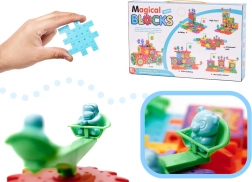 S kockami Magical Blocks nebude mať zábava konca. Môžete si byť istí, že s touto sadou sa vaše dieťa nebude nudiť. Kocky v tvare ozubených koliesok sú návrhom skvelej zábavy podporujúcej správny vývoj vášho dieťaťa. Pri stavbe malý konštruktér podnieti kreativitu, získa schopnosť logického a kreatívneho myslenia a rozvíja manuálne zručnosti. Rozmanitosť prvkov a farieb dáva neobmedzené možnosti stavby.
