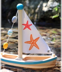 Táto kvalitná vodná hračka Small Foot prináša deťom radosť z voľnej hry vo vode aj mimo nej. Drevený trup s hladkým povrchom a látková plachta s motívom hviezdic zabezpečujú bezpečnú manipuláciu aj atraktívny vzhľad. Plávajúca konštrukcia je ideálna do vane, k bazénu či na letné vodné hry v prírode.