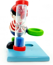 Motivujte deti k pravidelnému čisteniu zubov zábavnou formou. Drevený pirát s presýpacími hodinami s modrým pieskom spoľahlivo odmeria odporúčané 2 minúty, zatiaľ čo integrovaný držiak na zubnú kefku udrží kúpeľňu prehľadnú.