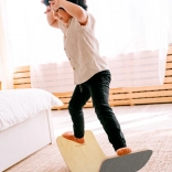 Táto všestranná balančná doska prináša zábavné cvičenie pre malých aj veľkých. Jednoduchý tvar rozvíja motoriku, posilňuje stabilizačné svaly a učí telo lepšej kontrole. Vďaka starostlivo brúsenému drevu je príjemná na dotyk a bezpečná pri každodennej hre.