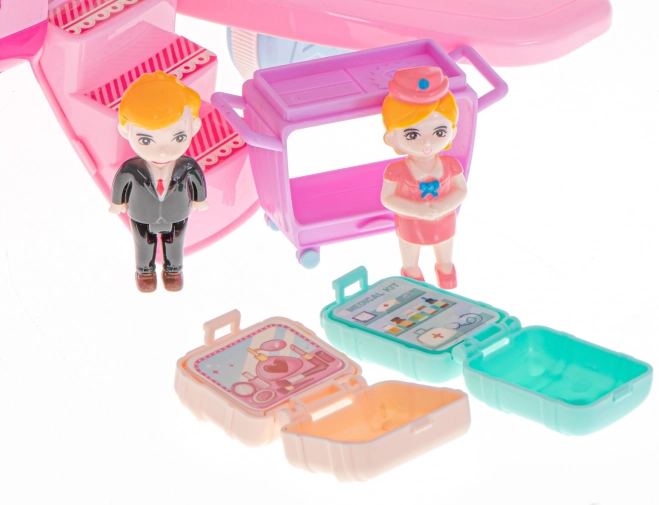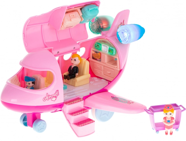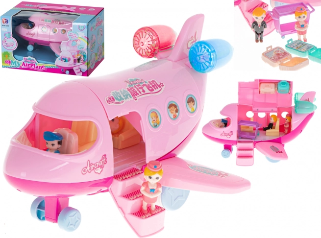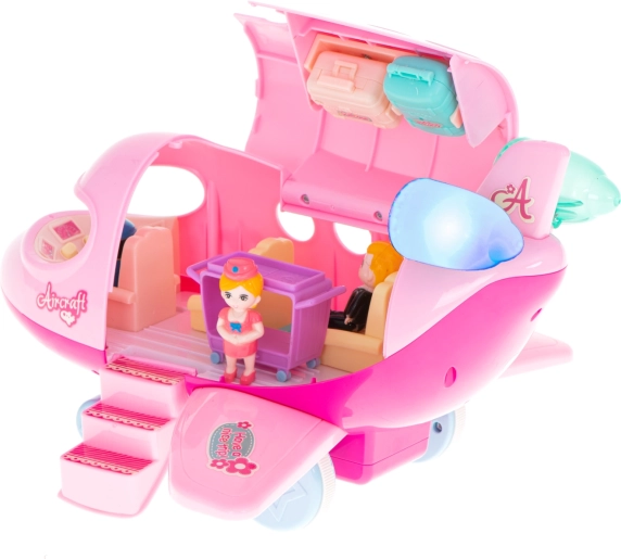 Keď stlačíte tlačidlá, vydáva zvuky známe zo skutočného letiska, vrátane pristávania. Rozsvieti sa farebnými LED diódami. Lietadlo tiež hrá melódiu. Lietadlo bolo vybavené pohyblivými kolesami. V lietadle čaká na cestujúcich pilot. Na palubu berie elegantného cestujúceho a letušku. Počas letu je okrem úchvatného výhľadu za oknom zabezpečené aj občerstvenie, ktoré sa doručí na špeciálnom vozíku. Samozrejme, bez batožiny sa cestovať nedá, preto súprava obsahuje dva otváracie kufre s odnímateľnými držadlami.