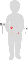 Značky sú približne 11 cm vysoké, kužele okolo 3,2 cm – veľkosť ideálna na uchopenie, stavanie a tvorenie vlastného dopravného sveta.