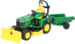 Rozšírte svoj herný svet o detailný záhradný traktor JOHN DEERE X949 od značky BRUDER. Vďaka funkčnej prednej radlici, žaciemu ústrojenstvu a sklopnému vozíku deti ľahko napodobnia skutočné práce v záhrade – od odhŕňania lístia po „kosenie“ trávy a odvoz materiálu.