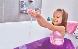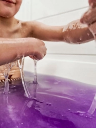 Glibbi premení kúpeľ na fialový trblietavý sliz, čo deťom prinesie úplne nový pocit z bežného kúpanie.