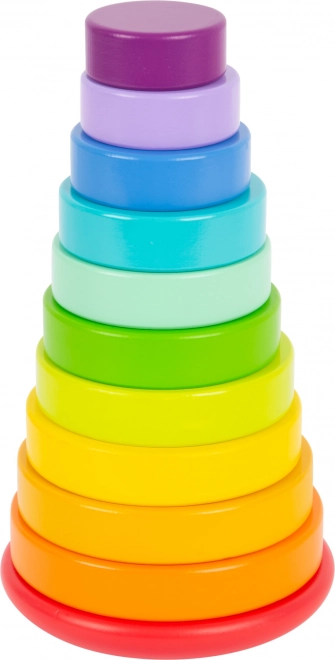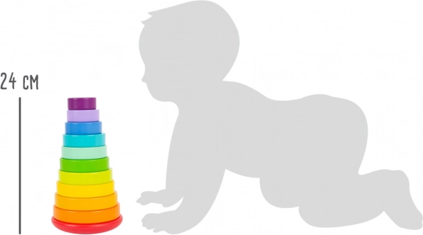 Vďaka desiatim pestrofarebným diskom a tyči so zaoblenou základňou táto veža podporuje rozvoj motorických zručností a rozlišovanie farieb.