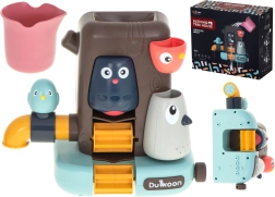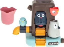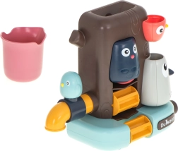 Premeňte každodenné kúpanie na dobrodružstvo! Tento farebný stromový domček s vtáčikmi a funkčným kohútikom priľne na vaňu pomocou prísaviek a poskytne množstvo vodných aktivít. Deti nalievajú vodu z pohárika a sledujú, ako sa roztočí mlynček, tečie voda z kohútika a z vtáčika strieka jemná sprška ako sprcha. Skvelé na rozvoj jemnej motoriky, logického myslenia aj kreativity.