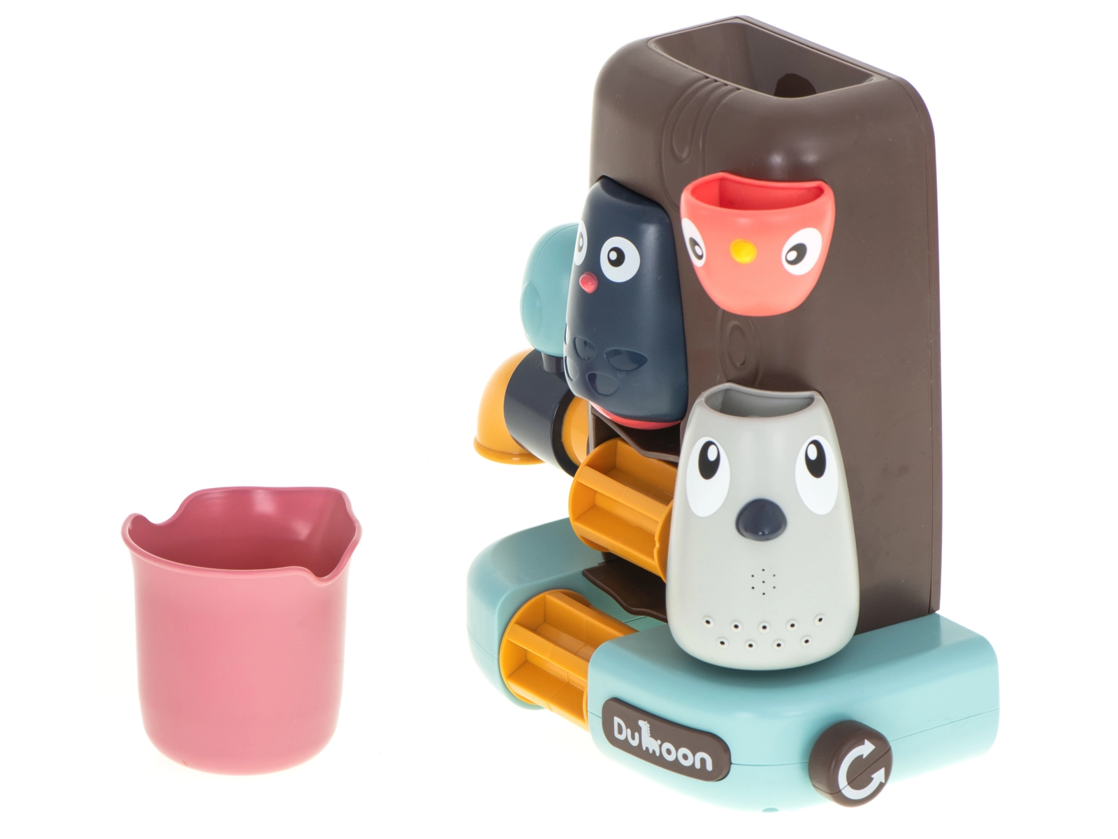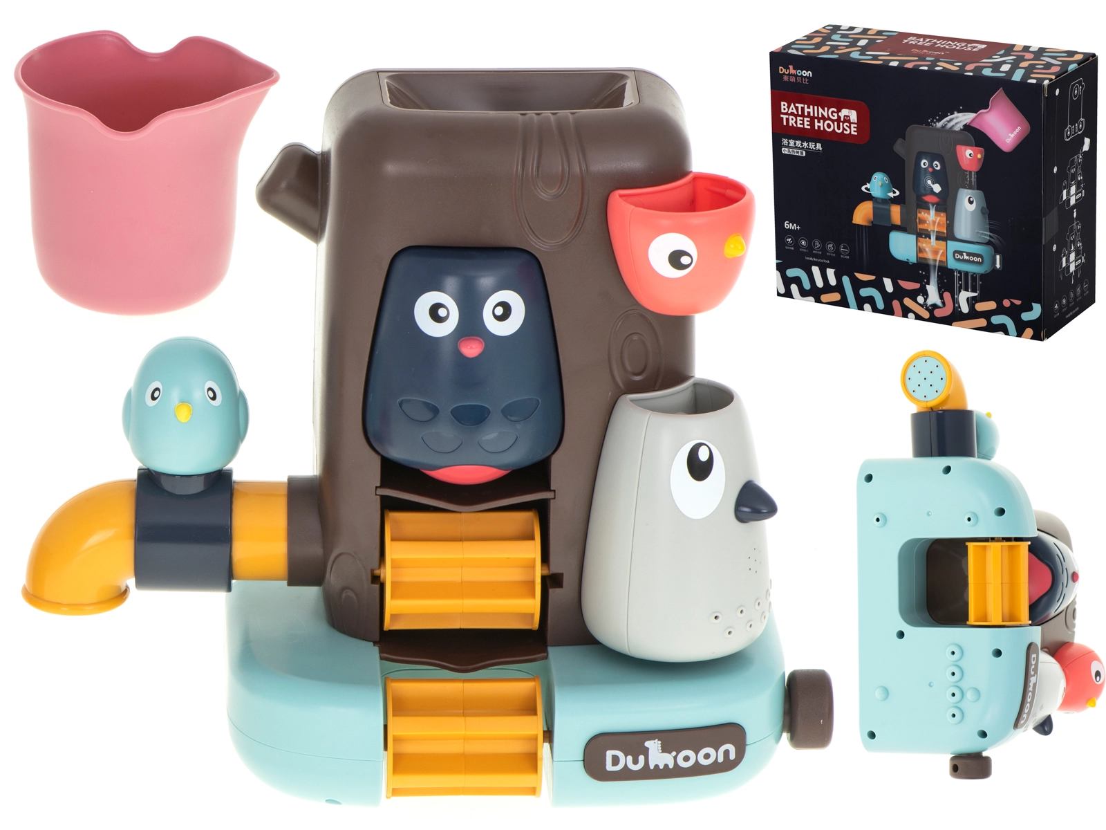 Veselý stromový domček s roztomilými vtáčikmi je ideálnou motiváciou pre deti, ktoré kúpanie práve neobľubujú. Jednoducho ho pripevníte na vaňu alebo obklady pomocou prísaviek, naplníte vodou z priloženého pohárika a zábava sa začína. Modrý vtáčik ovláda kohútik – otočením vodu zastavíte či pustíte, sova stráži vodný mlynček a sivý vtáčik vytvára sprchový efekt vďaka jemným otvorom.