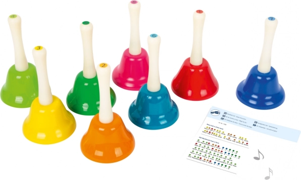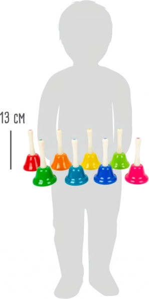 Objavte čaro hudby s touto sadou osmi zvončekov, ktoré sú nielen krásne farebné, ale tiež funkčné zabezpečujú každý tón od C po H. Deti sa môžu naučiť rôzne melódie, ako je 'Strýko Donald farmu mal', 'Rolničky' a 'Trblietaj sa, hviezdička'. Táto sada podporuje hudobnú výchovu, rozvoj rytmiky a jemné motorické schopnosti. Ideálna do škôlky a na prvé stupne základných škôl.