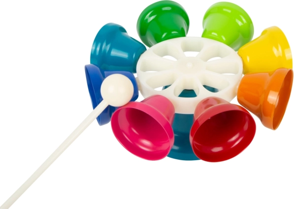 Priloženou bielou paličkou deti jednoducho vyťukajú rytmus aj melódiu. Zvončeky možno hrať na stojane alebo ich držať v ruke.