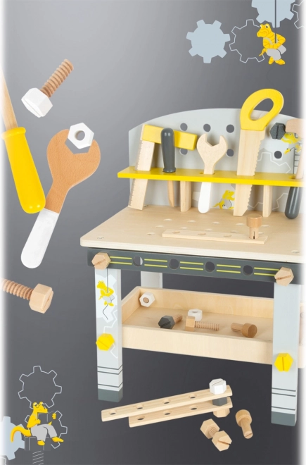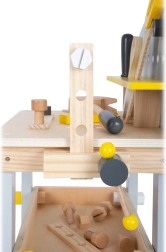 Tento detský ponk Miniwob prináša do detskej dielne skutočne veľa zábavy. Vďaka svojej kompaktnej veľkosti a klasickému dizajnu sa dá ľahko uložiť aj do menších priestorov. Ponk je vybavený 5 kusmi dreveného náradia a širokou škálou doplnkov, ktoré uľahčujú fantazijnú hru a praktickú výuku zručností.