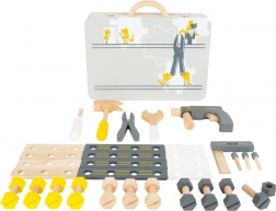 Súčasťou sady sú: vŕtačka s magnetickými nástavcami, kladivo, kľúč, skrutkovač a mnoho ďalšieho. Deti môžu rozvíjať svoju zručnosť vďaka farebným stavebnicovým dielom a robustným skrutkám s maticami. Tento produkt nielenže podporuje predstavivosť, ale tiež pomáha rozvíjať jemnú motoriku a koordináciu ruka-oko.