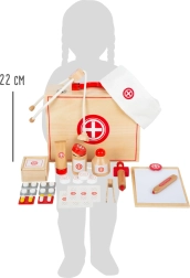 Detský lekársky kufrík Small Foot je ideálnou voľbou pre malých lekárov a lekárky, ktorí sa chcú vybaviť na cesty k pacientom. Tento kufrík obsahuje všetky dôležité zdravotnícke pomôcky, ktoré sú plne drevené a balené v klasickej bielo-červenej farbe.