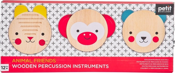 Táto hravá sada troch perkusných nástrojov z dielne Petit Collage je ideálnym úvodom do sveta hudby. Veselé motívy zvieratiek (opička, medveď a zajačik) motivujú deti k objavovaniu rytmu a zvukov, ktoré podporujú prirodzený rozvoj sluchu a zmyslového vnímania.