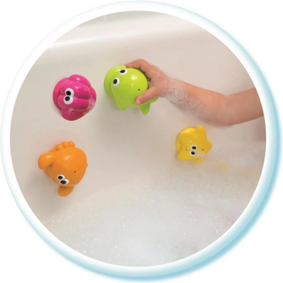 Každé zvieratko má svoju prísavku, čo umožňuje hru s prichytením na vaňu a podporuje motorické zručnosti.