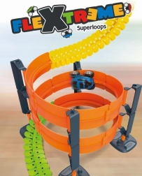 Superloopingová sada pre svet pretekárskej dráhy Smoby FleXtreme, v ktorom si deti môžu stavať tie najbláznivejšie trate pomocou flexibilných koľajníc s poriadnym stúpaním, klesaním a divokými zákrutami. Sada obsahuje 2 multifunkčné superloops slučky s upevňovacím príslušenstvom. Touto sadou možno ideálne doplniť existujúcu pretekársku dráhu FleXtreme. Superloops môžete zostaviť a využiť rôznymi spôsobmi – ako dvojitú super slučku, ako dve po sebe nasledujúce jednoduché slučky alebo ako jednoduchú slučku kdekoľvek na trati. Možno zostaviť a zapojiť vodorovne aj zvisle.