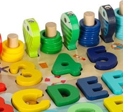 Táto kreatívna didaktická sada ponúkne deťom mnoho spôsobov, ako sa učiť hrou. Vďaka sorteru si precvičia rozpoznávanie tvarov, čísel a písmen, pomocou počítadla si osvoja základy počítania a s magnetickým prútom si užijú zábavné chytanie rybičiek, ktoré posilňuje koordináciu oko–ruka.