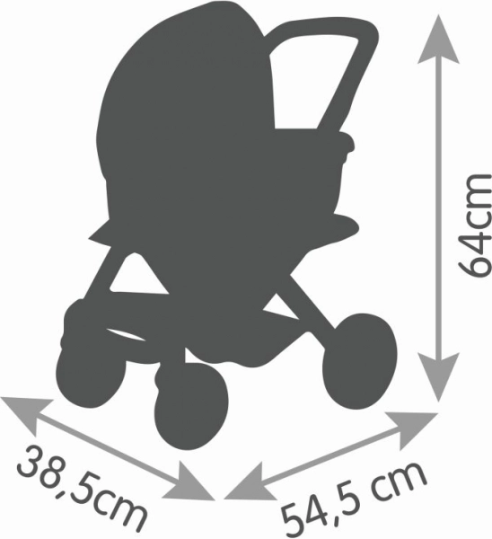 Robustné poťahy z plastovej tkaniny sú odolné a ľahko udržiavateľné – stačí ich utrieť vlhkou handričkou. Otočné predné kolieska a protihluková vrstva na kolesách sa postarajú o plynulý, tichý a stabilný pohyb doma aj vonku. Vhodné pre bábiky do 42 cm (bábika nie je súčasťou balenia).