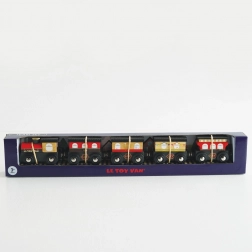 Štýlový drevený vlak ROYAL EXPRESS od Le Toy Van poteší deti aj rodičov. Obsahuje lokomotívu a päť vagónov s magnetickým spojením, je vyrobený z udržateľného dreva a maľovaný netoxickými farbami na vodnej báze. Podporuje jemnú motoriku, imaginačnú hru a je kompatibilný s väčšinou drevených vláčikodrág.