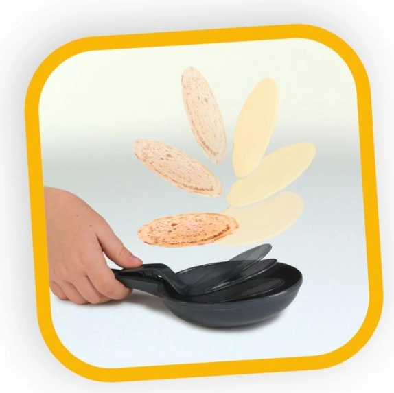 Od panvice a náradia až po burger, hranolky, omáčky a kreditnú kartu. Palacinka pri otočení na panvici mení farbu pre ešte väčšiu zábavu.