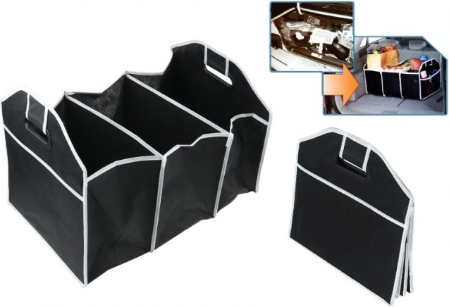 Veľký a praktický organizér do auta. Vynikajúca taška s priehradkami, do ktorých možno uložiť rôzne praktické predmety, ako sú prevádzkové kvapaliny, náradie či drobné nákupy. Zaistí, aby ste našli všetky dôležité veci, a pomôže vám udržať poriadok. Zabraňuje rozsypaniu drobných predmetov po batožinovom priestore počas jazdy.