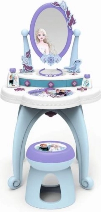 Ponorte sa do kúzelného sveta Ľadového kráľovstva s týmto štýlovým toaletným stolíkom 2v1. Nádherný dizajn vo farbách Elsy a Anny z Ľadového kráľovstva premení každú miestnosť na palácovú komnatu.