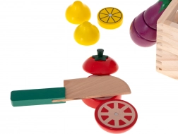 Táto drevená magnetická sada do detskej kuchynky prináša realistické krájanie a šúpanie bez nebezpečenstva. Zeleninu rozdelíte bezpečným nožom, položíte na lopárik a po hre ju vďaka magnetom ľahko spojíte späť. Deti si tak hravou formou fixujú zdravé návyky a pochopia aj princíp magnetického spájania.