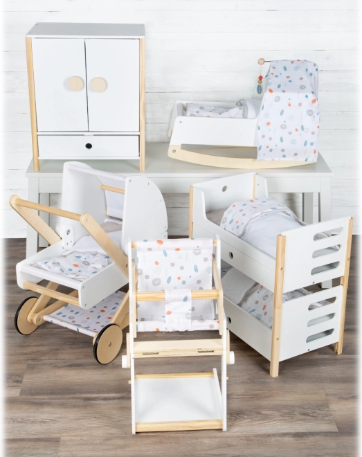 Stolička je súčasťou rady Little Button, ktorá ponúka jednotný dizajnový štýl pre rôzne príslušenstvo pre bábiky, čo umožňuje vytvoriť harmonický detský kútik.