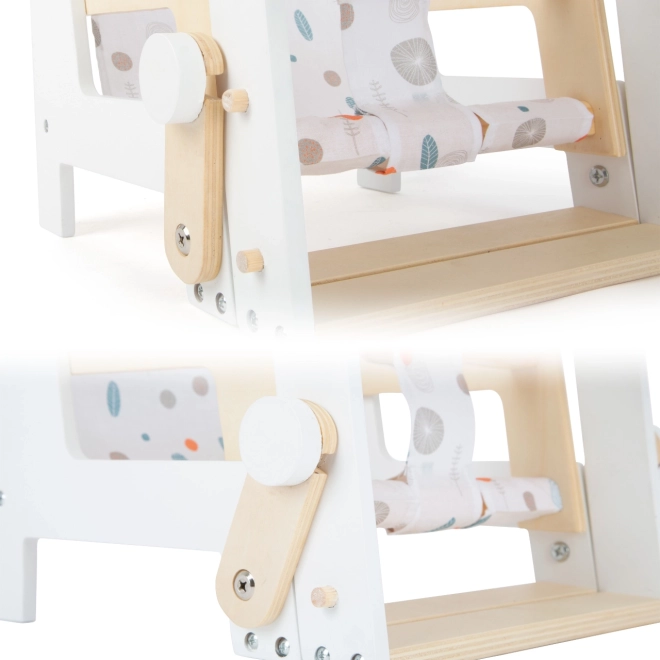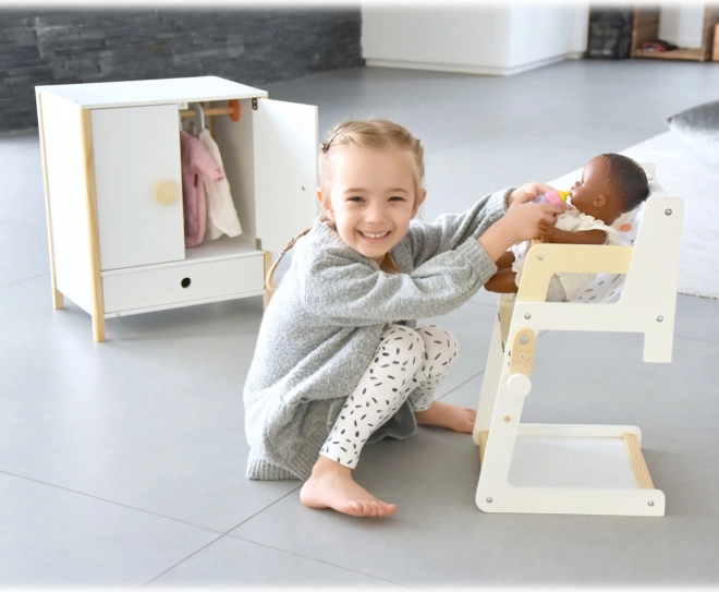 Multifunkčná stolička pre bábiky Little Button ponúka vynikajúcu možnosť na hranie na rodičov vďaka svojmu jednoduchému škandinávskemu dizajnu a kvalitným materiálom. Táto stolička môže byť ľahko premenená na malý stolík so stoličkou a je ideálna pre bábiky do veľkosti 46 cm.