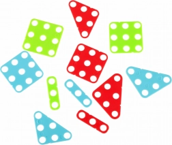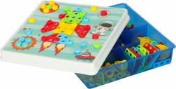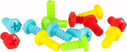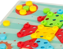 Veľká sada farebných skrutiek, doštičiek a tvarových dielikov prebúdza kreativitu a podporuje samostatné tvorenie mozaík aj modelov.