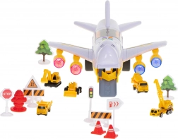 Tento multifunkčný set kombinuje dopravné lietadlo s mini stavebným svetom. Autíčka môžu do lietadla vojsť po sklopnej prednej rampe a vďaka otvárateľnej hornej časti majú deti jednoduchý prístup k nákladu. Motory sa rozsvietia LED svetlami, ktoré podporia realistický zážitok z hry.