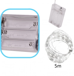 Vytvorte si doma kúzelnú atmosféru s jemným LED reťazom na tenkom drôtiku s dĺžkou 5 m a 50 diódami v studenej bielej. Vďaka batériovému napájaniu ho umiestnite kamkoľvek bez zásuvky, ideálne na vianočné dekorácie, do pohárov, fliaš aj ako romantické ambientné osvetlenie po celý rok.