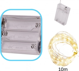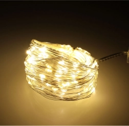 Jemná, teplá biela žiara pre kúzelnú atmosféru doma aj počas Vianoc. 10 metrov pružného drôtika so 100 LED na batérie ľahko skryjete do vetvičiek, pohárov či dekorácií a vytvoríte romantické, útulné osvetlenie kdekoľvek bez zásuvky.