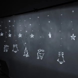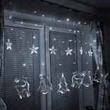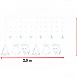 Krásna dekorácia pre váš domov počas týchto Vianoc. Tento krásny svetelný záves so stromčekmi, sobmi, zvončekmi a hviezdičkami dodá iskru každému interiéru.