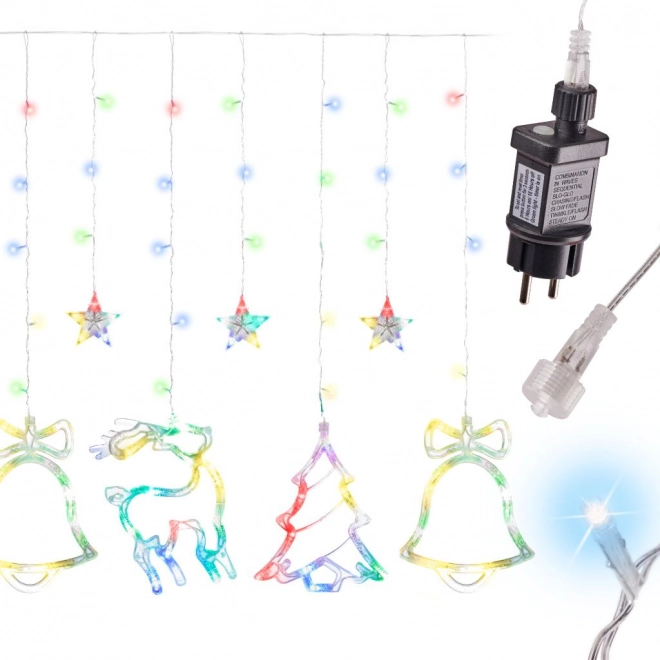 Svetelná LED závesná záclona s motívom sobov a vianočných symbolov 2,5 m – Zadné